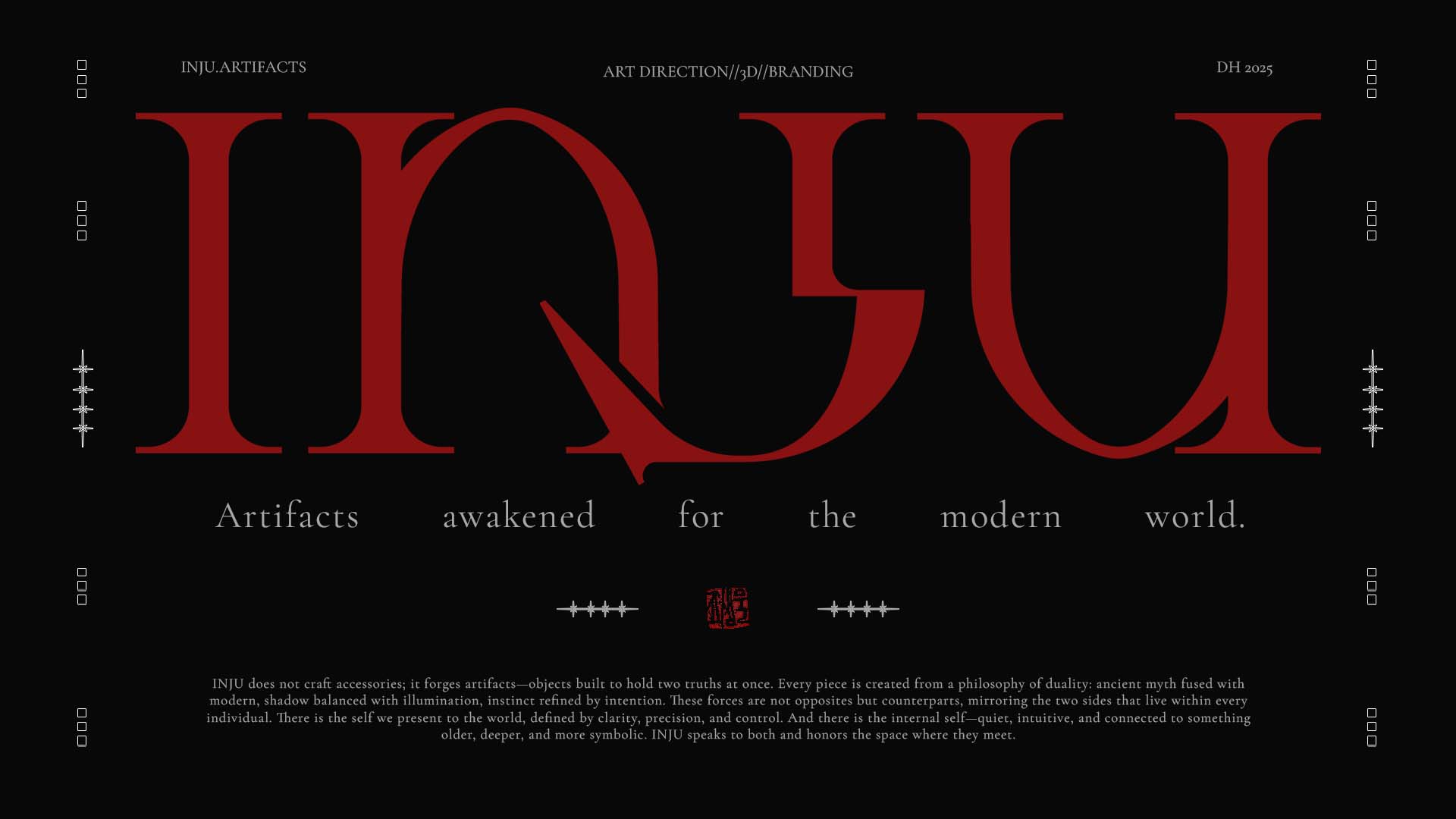 INJU is a conceptual fashion/jewelry brand based on an alter ego I created for myself. As an adoptee, this project represents the other half of me that grew up across the world in Korea while still remaining true to the person I've become today.